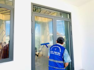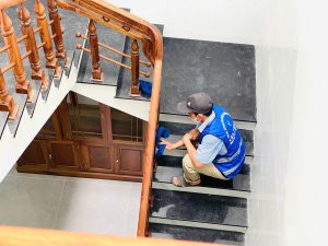 • Lau cầu thang, lau cửa kính, cửa gỗ để đảm bảo mọi bề mặt đều sạch bóng.